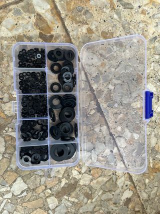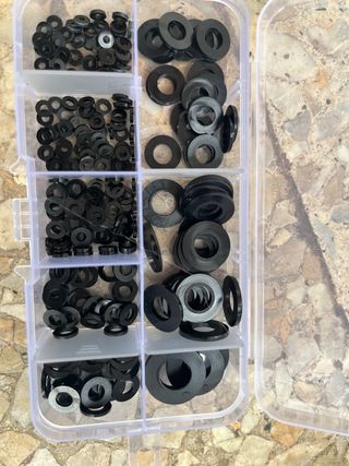 Lote de arandelas de plástico de color negro. - Material: Plástico. - Color: Negro.