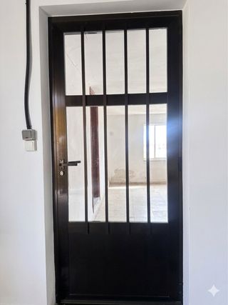 Puerta de PVC en color gris. Diseño moderno y elegante. - Material: PVC serie 76 md kommerling - Color: Gris antracita - Medida: 2330 x 1010 - Apertura derecha por la parte interior - Solo manilla interior. - Oscilobatiente multipunto wk1 - Vidrios triples passive climalit - Marco cerrado inferior