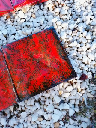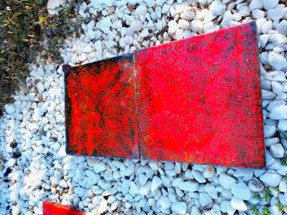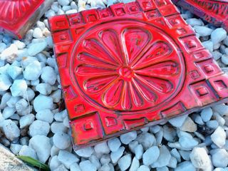 Baldosas vintage únicas años 60, rojo. 20 x 20 x 2 cm. Diseño Fat Lava: las piezas cerámicas se asemejan a las burbujas de lava de un volcán,por los acabados. Unidades: Sin relieve ( rojas/negra): 82 uds. Limpias de mortero excepto 5. 6 tienen un ligero desconchon. Dibujo relieve 2 flores: 2 uds. Limpias, una con leve quicazo. Dibujo relieve 1 flor: 1 UD. Dibujo cuadrado: 2 Uds. Limpias, una con quicazo. Dibujo círculo (uniendo 4): 11uds. (Formarían 3 dibujos y 3 sueltas). Dibujo flor ( uniendo 4): 12uds ( 3 dibujos). Precio por unidad: lisas 8€ (6€sin limpiar o quicazo) relieve 15€ (12€ quicazo).Precio negociable por todo el lote