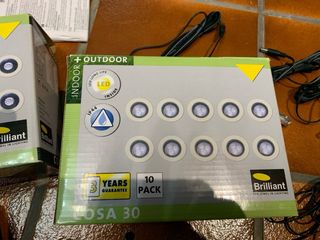 Se venden dos cajas de focos LED para exterior, modelo COSA 30. - Cada caja contiene 8 y 5 bombillas. - Marca Brilliant. - Apto para interior y exterior.