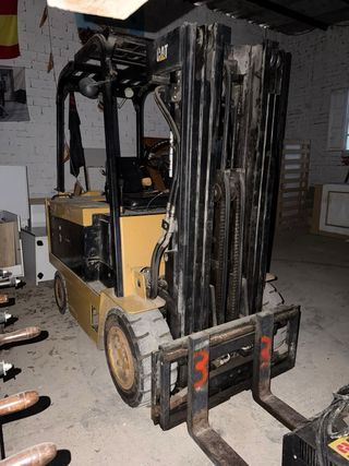 Carretilla elevadora eléctrica marca CAT, Toro ,ideal para almacenes o trabajos de carga. - Mástil de elevación. -Carretilla eléctrica Caterpillar. Modelo: EP18KT Capacidad: 1800kg. Altura : 5500mm. Replegado: 2460mm. Elevación libre: 1580 mm. Mástil: doble. Batería: 48V 625 Ah con cargador . - Marca caterpillar . - Funciona perfectamente .