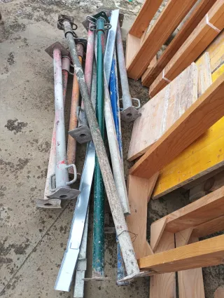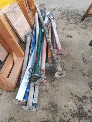 Lote de puntales metálicos para obra, de diferentes medidas y colores. - Material: Metal. - Colores: Rojo, verde, azul y gris. - Base y parte superior con plato. - Ideal para apuntalamiento y soporte en construcciones. 10€ Unidad