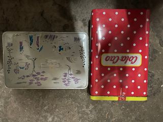 Conjunto de dos latas metálicas vintage de Cola Cao, ideales para coleccionistas o como elementos decorativos. - Diseño retro con ilustraciones. - Material: Metal.