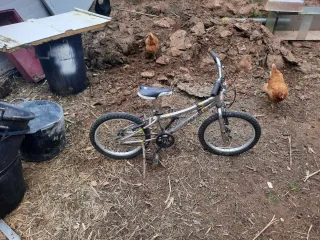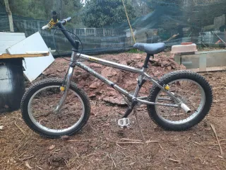 Bicicleta BMX de estilo clásico, ideal para paseos y trucos. - Cuadro de metal plateado. - Ruedas de 20 pulgadas. - Sillín acolchado.