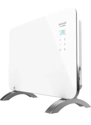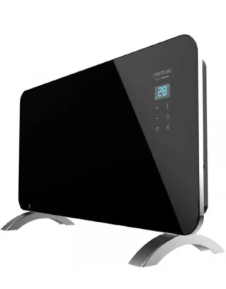 Radiador eléctrico Cecotec con un diseño moderno y elegante. Perfecto para mantener tu hogar cálido. - Panel frontal de cristal negro. - Base de metal plateado. - Potencia de 1500W.