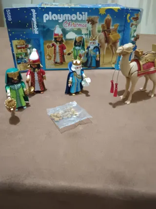 Set de Playmobil de la colección Christmas, referencia 5589. - Incluye figuras de los Reyes Magos. - Cuenta con un camello. - Caja original incluida. - Ojo tiene todas las piezas completas con caja tal cual todo como está en la foto