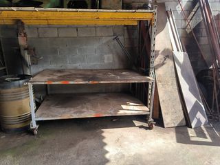 Mesa de hierro .en la foto se ve con ruedas pero se vende sin ellas pues ya no las tiene tiene chapa de 3 mlm en las dos bases