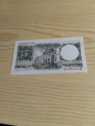 Billete de cinco pesetas del Banco de España con fecha de 22 de julio de 1954.