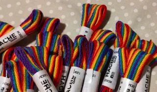 Cordones de la marca HACHE Laces con diseño arcoíris, Bandera LGTBI. Nuevas a estrenar, sin usar. Longitud de 120 cm. Precios: 1*1,5€ 5*7€ 10*13€ 18*20€ #Cordones #Cordoneras #Zapatos #Zapatillas