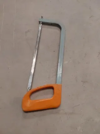 Serrucho de arco con hoja de sierra. - Mango de metal - Hoja de sierra metálica.