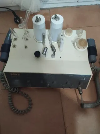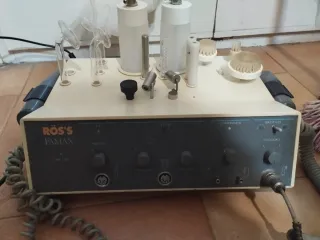 Equipo de alta frecuencia de la marca Ross. Incluye varios accesorios para diferentes tratamientos. - Dos tubos de cristal para alta frecuencia. - Cepillos de limpieza facial. - Mango de aplicación. Mango del ozono hay que cambiarlo