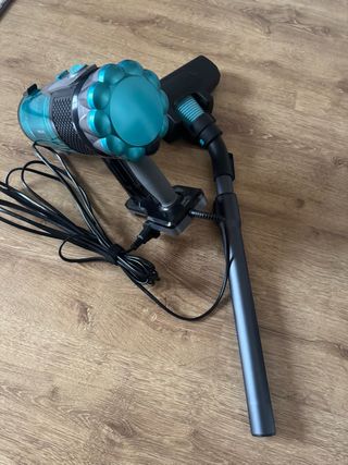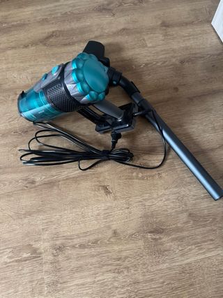 Aspiradora de mano Cecotec con diseño moderno. - Color principal: turquesa y gris. - Incluye cargador y accesorios.