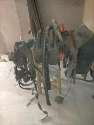 Conjunto de arreos de cuero para mulas o caballos pequeños. - Arreos completos. - Material de cuero.