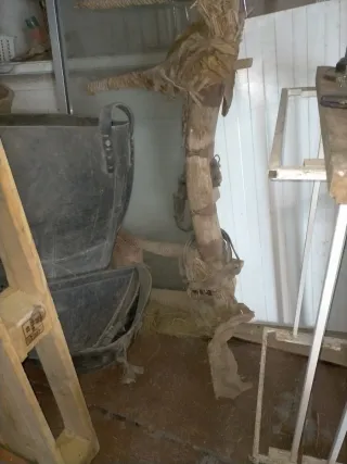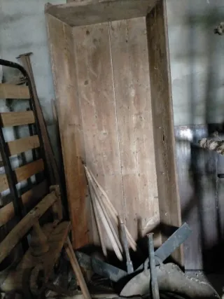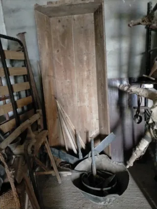 Artesa de madera muy antigua, utilizada tradicionalmente para la matanza de cerdos. - Material: Madera. - Estilo: Rústico y antiguo.