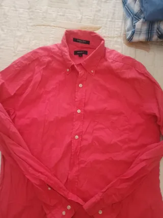 Camisa de manga larga de la marca Gant. Mide 57 cm de axila a axila. Original, vean fotos. Color rojizo - Cuello de camisa. - Cierre de botones. - Bolsillo en el pecho y logo bordado.