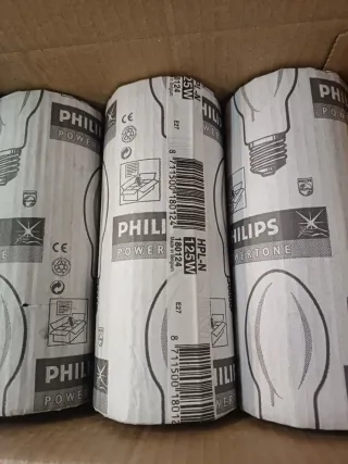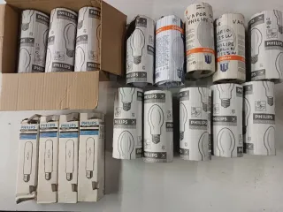 Se vende lote completo de bombillas profesionales de primeras marcas Philips y Osram, ideales para iluminación industrial y exterior. ✔ Diferentes modelos y potencias (aprox. 125W y 250W) ✔ Tecnologías: vapor de sodio / vapor metálico / descarga ✔ Casquillo E40 ✔ Uso profesional: alumbrado público, naves, almacenes, talleres, exteriores ✔ Bombillas nuevas, embaladas individualmente ✔ Ideal para electricistas, mantenimiento o reventa