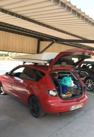 Tienda de techo para camping, estilo Maggiolina. - Modelo Fabricamp. - Diseño tipo hard top o caja rígida. - Color blanco. Entran 2 Adultos y un niño. Se regala sistema para guardarlo en el techo del garaje. Y dos portaequipajes para Mazda 3 y Golf . Urge la venta