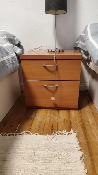 Conjunto de muebles de madera para dormitorio. - Armario de gran capacidad con puertas. - Cómoda con cajones. - Mesita de noche a juego. - medidas cómoda: 55 ancho x 40cm prof. x 82cm alto - Mesilla a juego incluido. Todo por 100 euros. En muy buen estado.