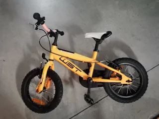 Bicicleta infantil de color naranja. Rueda de 14 pulgadas. Mi hija la uso de los 3 a los 5 años. Esta oxidada por la intemperie. Pero si controlas de bicis entiendo que s e podrá poner a punto. Precio original 150 euros