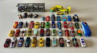 Lote 48 coches Hot Wheels + camiones + lanzador