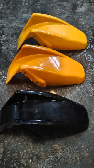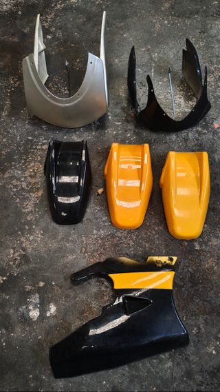 Piezas de minimoto pocket bike. Lote completo lo que se ve en las fotos - Carrocería en color negro. - Carrocería en color amarillo. - Piezas de plástico.