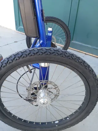 Triciclo eléctrico de la marca Ciclotek modelo Soul , en color azul, frenos de disco. Ideal para desplazamientos cómodos y seguros. Ruedas delanteras nuevas. Centralita y bateria nuevas de 2024 Cable y funda frenos delanteras nuevos. Pastillas freno traseras nuevas. Lleva un gas para usar sin pedalear. Bateria de 36v 16ah, mas de 80km de autonomia. Funciona perfectamente. No hago envios