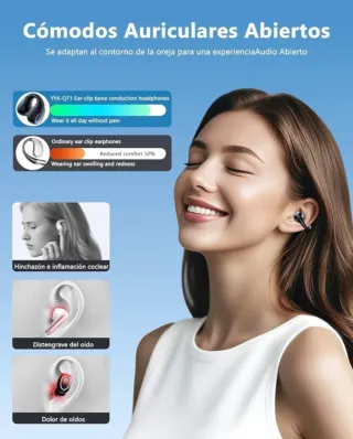 Auriculares inalámbricos con un diseño moderno y elegante. Auriculares Open Ear Bluetooth 6.1 para Deporte, 50H Autonomía, Estuche con Pantalla LED, Micrófono para Llamadas, Ajuste Firme y Cómodo para Running, Ciclismo y Gimnasio - Acabado brillante. - Indicador LED de carga. - Diseño ergonómico.