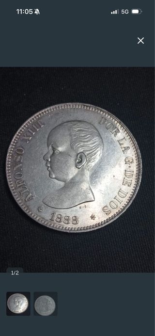 Moneda Alfonso XIII 1888 Plata