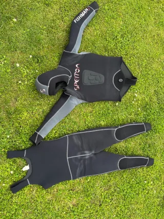 usado, en buen estado. talla 2. Espesor de 7mm. pantalón con tirantes + chaqueta. material interior microporoso, de vestir con agua. traje submarinismo pesca 5 7 mm marisqueo almeja percebe navaja erizo recreativa