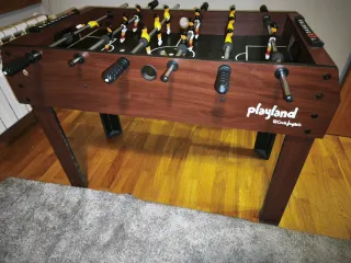 Futbolín de la marca Playland, ideal para partidas divertidas. - Diseño clásico con acabado en madera. - Barras metálicas con jugadores. - Marcador de puntos.