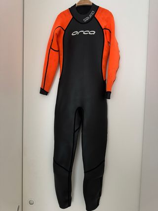 Neopreno Orca de manga larga para niño, ideal para deportes acuáticos. - Color negro y naranja. - Logo de Orca en el pecho. - Cuello alto. - Costuras reforzadas.