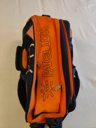 Estado usada pero en muy buen estado. Solo tiene una mancha que ni he probado a ver si sale. Práctica bolsa de pádel de la marca Padel Lobb, con compartimento para zapatillas, pala y ropa. - Doble asa. - Color naranja vibrante. - Diseño tipo mochila. - Compartimentos amplios. Ideal iniciación de los niños.
