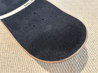 Skate completo de la marca Miller Division. Totalmente nuevo. Nunca usado. Se puede ver en la lija, ruedas y ejes. Lo unico que tiene son rayas en la pintura que a este modelo le sale a todos. Se ve perfectamente en las fotos. - Tabla de 8 x 31,75. - Diseño con banda blanca y logo. - Ruedas rojas.
