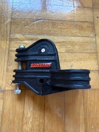 Base de mordaza giratoria marca Ronstan con roldana de 28 mm , rodamientos de bolas. Diseñada para sistemas de trimado y manejo de cabos (drizas, cunningham o outhaul ) en embarcaciones vela ligera. Hecha en nylon reforzado con fibra. La posición de la polea se puede cambiar para la línea de control que se conduce desde abajo.Máxima carga de trabajo 125 kg. Opcional no incluido: la mordaza . Nueva , sin uso.