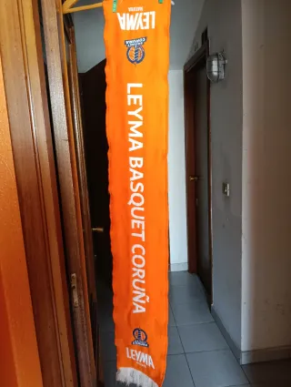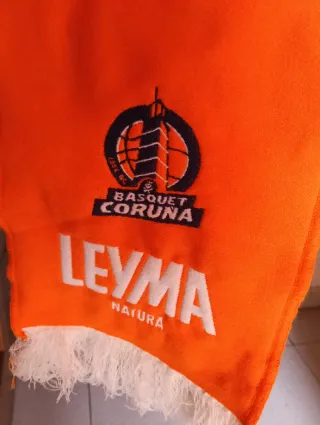 Bufanda oficial del equipo de baloncesto LEYMA Basquet Coruña. - Color naranja. - Diseño con el logo del equipo y el nombre. - Flecos en la parte inferior.