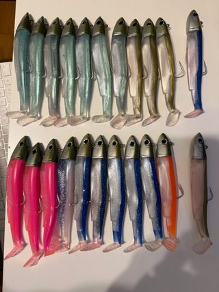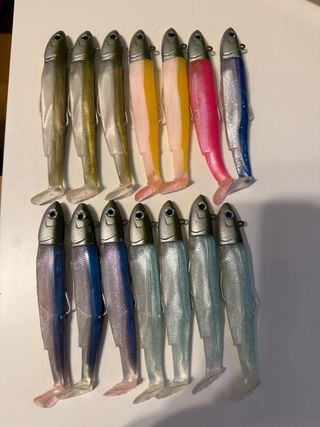 Lote de vinilos Black Minnow para pesca. - Varios colores disponibles. -Ideales para spinning y jigging Están montados con cabezas y anzuelos originales de Fiiish ( black minnow ) Son de tamaño 140 con cabezas de 60gr ( los de la segunda foto ) y de tamaño 160 con cabezas de 60 y de 90gr (dos de ellos)