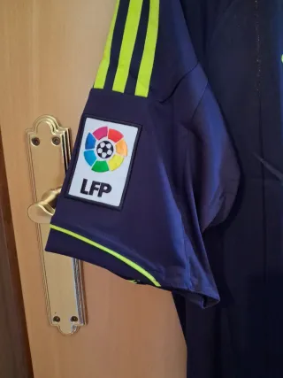 Camiseta de fútbol del Real Madrid. - Color azul marino con detalles en verde lima. - Logo de Adidas y escudo del Real Madrid. - Patrocinador bwin en la parte frontal. - Tecnología ClimaCool. Nueva, nunca se ha usado