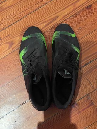 Título: Botas Adidas X 15.3 FG/AG + Medias Adidas - Talla 46 2/3 (Casi nuevas) Descripción: ¡Oportunidad! Vendo botas de fútbol Adidas X 15.3 en un llamativo color negro y verde flúor. Es un modelo icónico conocido por su excelente ajuste y ligereza, ideal para jugadores que buscan velocidad y control. Características principales: Estado: Impecable, muy poco uso (ver fotos de la suela y el interior). Suela versátil (FG/AG): Perfectas tanto para césped natural como para césped artificial de última generación gracias a su configuración de tacos. Talla: 46 2/3 FR (12 US / 11.5 UK / 30 cm). Cierre: Cordones para un ajuste personal