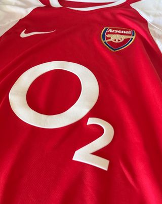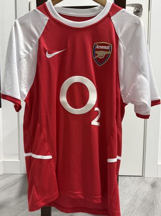 The Invincibles Era. El rojo vibrante de Highbury. La elástica asociada a Thierry Henry y la época dorada de la Premier League. Incluye los paneles laterales de malla característicos. - Color rojo con detalles blancos. - Logo del Arsenal bordado. - Sponsor O2 en grande. - Talla: L. - Estado: Como nueva. Blanco de mangas impoluto.