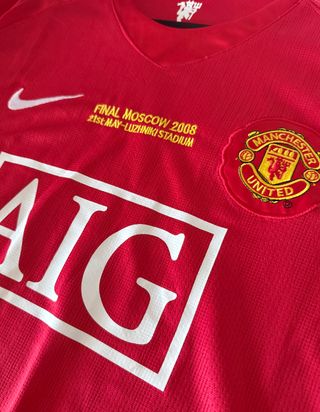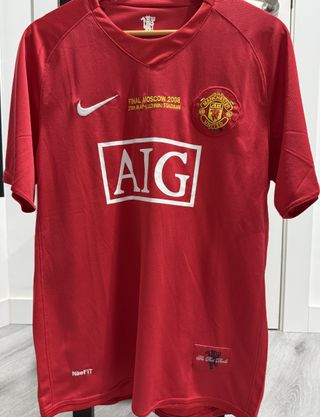 La noche de Moscú. Vendo camiseta del Manchester United (Man Utd) de la final de la Champions 2008. La época dorada de Cristiano Ronaldo y Rooney. * Detalle: Bordado "Final Moscow 2008" en el pecho. - Logo del Manchester United bordado. - Inscripción 'Final Moscow 2008' y fecha. - Patrocinador AIG en el frontal. - Estado: Como nueva. - Talla L