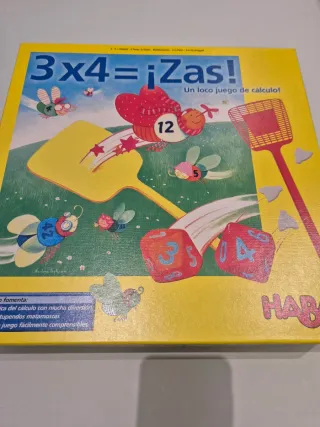 Juego de mesa HABA 3-4=Klatsch (3-4=Zas!). - Incluye libro de reglas. - Incluye cartas con números y moscas. - Incluye un matamoscas rosa. El juego se uso sólo una vez esta perfecto pero le falta una carta (tendria que haber 42 y hay 41).