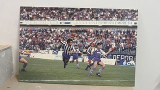 Fotografía original vintage (años 80) de un partido del RC Deportivo de La Coruña. Captura un momento de acción en el campo. - Material rigido - Ideal para coleccionistas y aficionados del Dépor. -Medidas 72x47cm