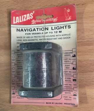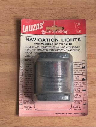 Luz de navegación bicolor de la marca Lalizas, ideal para embarcaciones de hasta 12 metros de eslora. - Fabricada en ABS con protección UV. - Lente de acrílico. - Resistente al agua y a los golpes. - No magnética. - Voltaje: 12V. - Cumple normativa IMCO/COLREG Marca reconocida en nautica. Nueva, precintada.