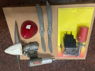 Se vende lote de artículos para aeromodelismo. - Cargador de batería CBP 1000/12, 15W, 15/13.5A, 50/60Hz. - 1 motor -2 helices -1 cono -1 chispo con cargador -2 bancadas