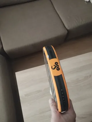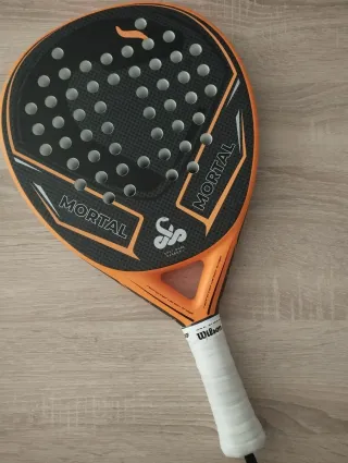 Pala de pádel Vibora Mortal Carbon 3K con un diseño llamativo en naranja y negro. - Marco de carbono. - Acabado mate.
