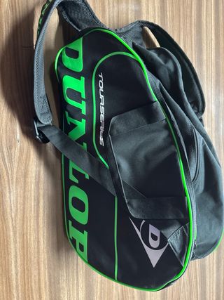 Vendo bolso deportivo Dunlop Tour Series, ideal para transportar raquetas de pádel. Está en muy buen estado y es perfecto para llevar tu equipo a la pista. Usado 1 semana. - Marca: Dunlop - Modelo: Tour Series - Color: Negro y verde lima - Asa bandolera