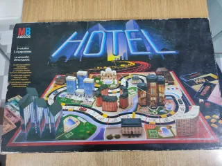 Juego de mesa HOTEL de MB Juegos. Vive la emoción de la riqueza. - Puede faltar alguna pieza. - Para 2-4 jugadores. - Fomenta la creación de cadenas hoteleras. - El objetivo es conseguir clientes y aumentar ingresos para hacer crecer el negocio. - Gasta dinero, construye hoteles y acumula o pierde fortunas.