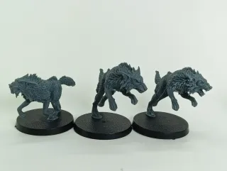 Figuras de Lobos Fenrisianos para coleccionistas y jugadores del capitulo de los Lobos Espaciales de los Marines Espaciales. 10 lobos de fenris de resina. - Set de 10 miniaturas de lobos. - Bases incluidas.