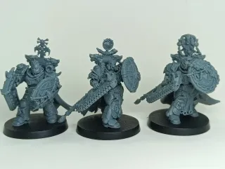Conjunto de 5 miniaturas de Exterminadores de asalto alternativos basados en la tematica de los Templarios Negros, listas para pintar y añadir a tu colección. - Incluyen peanas. - Diseños únicos y detallados.