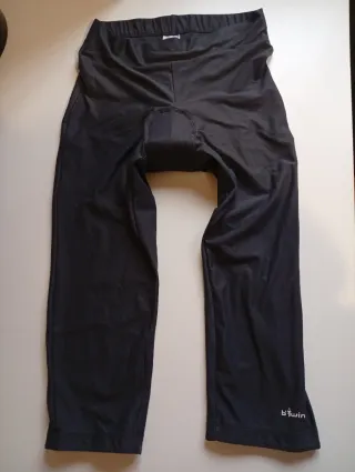 Pantalón pirata de la marca B'Twin, ideal para spinning. Talla M pequeña. No pongo que es nuevo porque lo he llegado a lavar, pero solo lo he usado un par de veces. - Color gris oscuro. - Cintura elástica. - Logo de la marca B'Twin bordado.